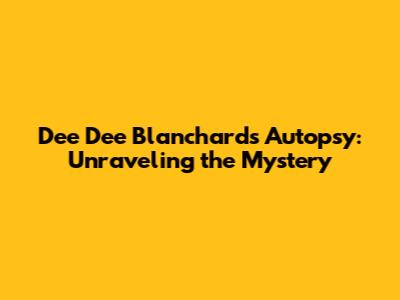 Dee Dee Blanchard's Autopsy: Unraveling The Mystery